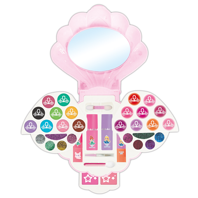 18色眼影膏,2色腮红膏,4色唇膏,10色闪粉唇彩,2色指彩,3只化妆刷
