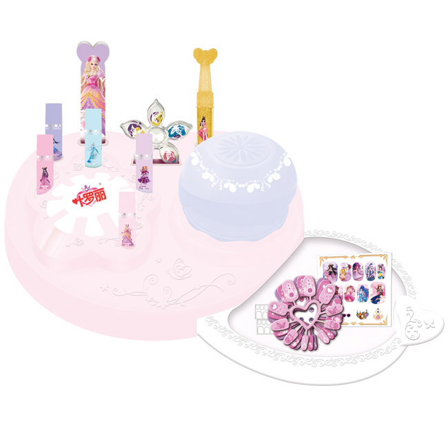 1个烘干机,5瓶水性珠光指甲油,1个指甲装饰器,2张钻石贴纸,1张甲油贴纸,3个指甲圈,3张双面胶纸,1片指甲锉,1瓶闪粉