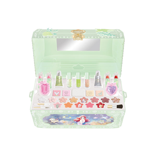 产品内容:7个唇彩,7个眼影,1个闪粉眼影,2个腮红,2个粉饼,4支唇膏,2瓶啫喱,3瓶指甲油,3条化妆刷,1块粉扑,1把钥匙,1条背带